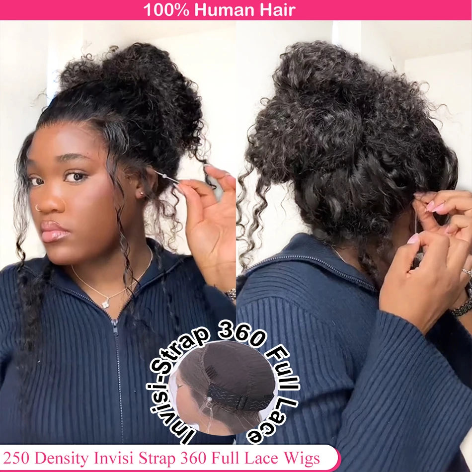 Invisible Strap 360 HD Full Lace Wig Human Hair Glueless Wig Pre Cut Lace 250 Density Deep Curly 360 Lace Front Wig Preplucked